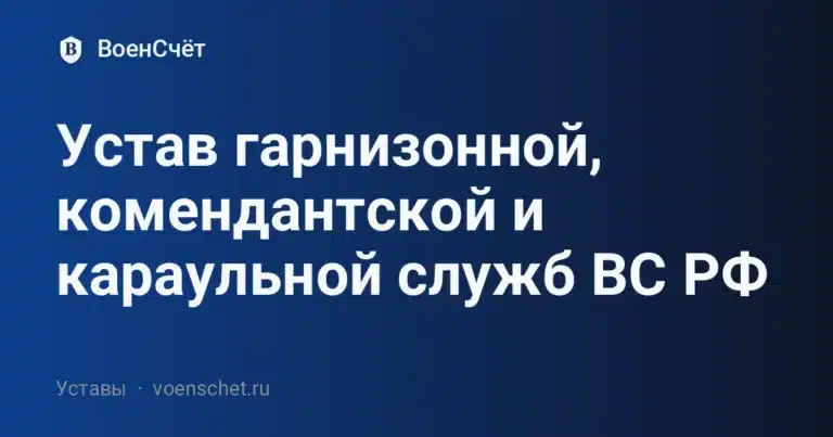 Устав гарнизонной службы — это нормативный документ, определяющий организацию гарнизонной, караульной и комендантской служб в Вооружённых Силах Российской Федерации. Он утверждён Указом Президента РФ №…