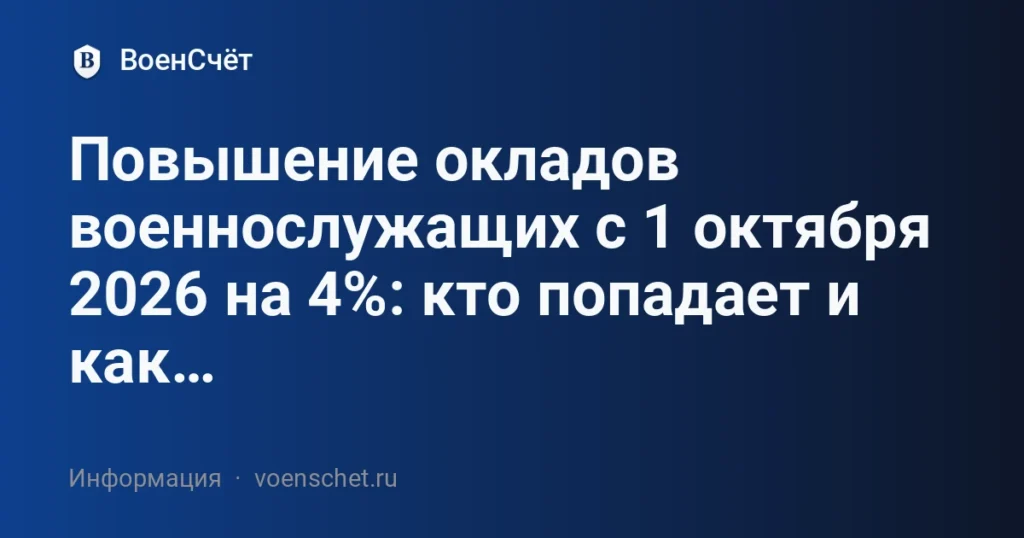 Повышение окладов военнослужащих 2026 обсуждается на уровне проекта: с 1 октября 2026 года предлагается индексация на 4%. Разбираем, кого это коснётся и как пересчитать денежное довольствие.