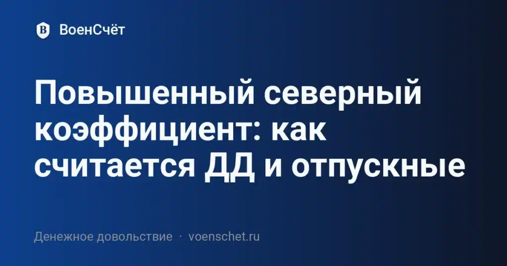 Северный коэффициент военным влияет на расчёт денежного довольствия и отпускных. Причём применяется и районный коэффициент (РК), и «северная» надбавка за стаж. Поэтому важно считать их от одной базы из шести элементов. Кроме того, отпускные сохраняют «север» на весь период отдыха.