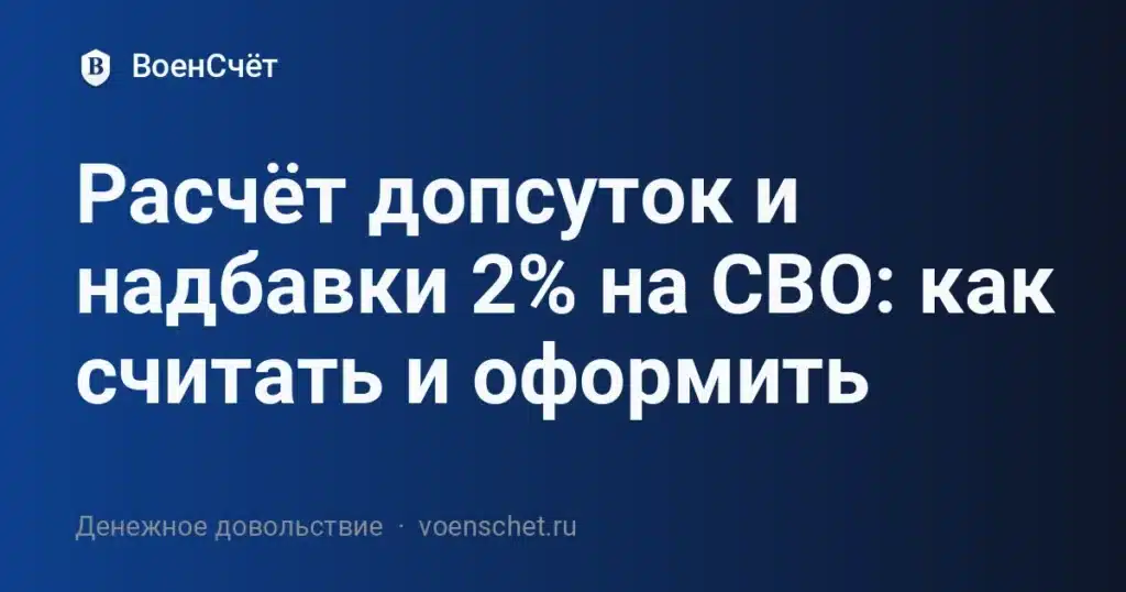 Допсутки и 2% на СВО — две разные истории: допсутки дают право на отдых или денежную компенсацию, а 2% — это надбавка от ОВД за дни участия в мероприятиях вне ППД (с лимитом 60% в месяц). Ниже — формулы, примеры и мини-калькулятор.