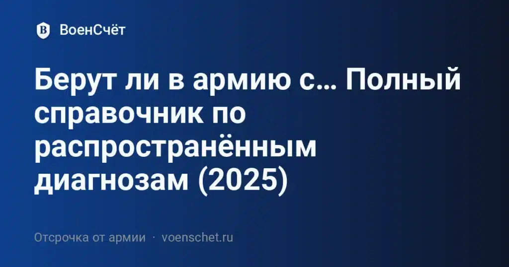 Берут ли в армию с [болезнь] — зависит от статьи и пункта Расписания болезней (Приложение к ПП РФ № 565) и документально подтверждённых нарушений функций. Ниже — короткие ответы, ориентиры по категориям годности и список документов для ВВК. Для точного решения всегда смотрят статью №… РБ и комплект обследований. КонсультантПлюс