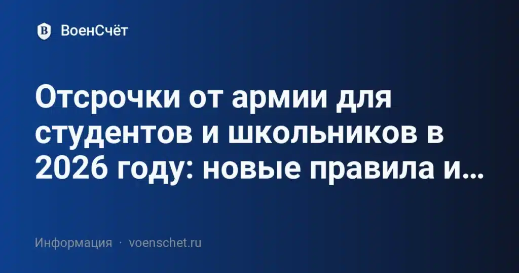 В этой статье разберём, какие отсрочки от армии по учебе действуют для школьников и студентов в 2026 году, что реально изменилось, какие «лазейки» больше не работают и в каких случаях отсрочку могут не дать — несмотря на наличие студенческого или школьного статуса.