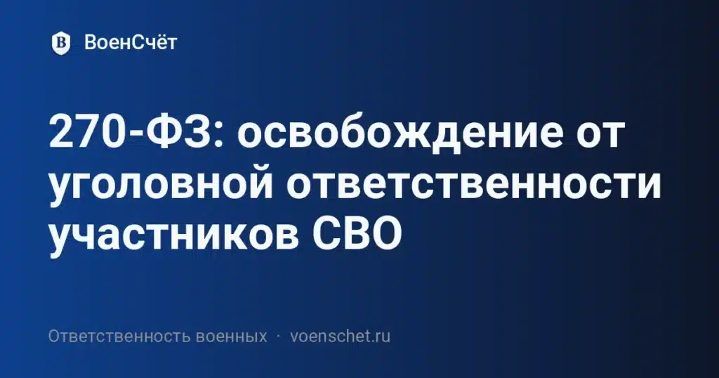 Федеральный закон № 270-ФЗ предусматривает освобождение от уголовной ответственности участников специальной военной операции (СВО) за преступления малой и средней тяжести. Это освобождение возможно лишь в том случае, если преступления были совершены до начала участия гражданина в операции. Рассмотрим подробно, как действует этот закон и какие условия должны быть соблюдены участниками СВО.