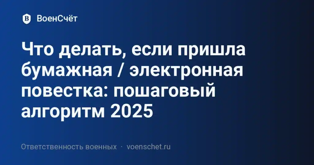 Получив бумажную или электронную повестку, не паникуйте: проверьте подлинность, соберите документы, явитесь вовремя и заявите о своих правах. Что делать если пришла повестка теперь ясно — следуйте алгоритму, и вы сведёте риски штрафа или ошибок комиссара к нулю.