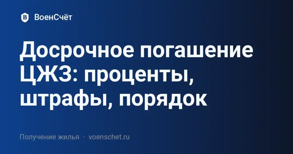 Досрочное погашение ЦЖЗ — это возврат целевого жилищного займа (средств НИС) раньше планового срока. Закон прямо допускает досрочку: участник НИС может закрыть ЦЖЗ полностью или частично, а при продолжении службы после полного погашения взносы на именной счет снова начисляются на общих основаниях.
