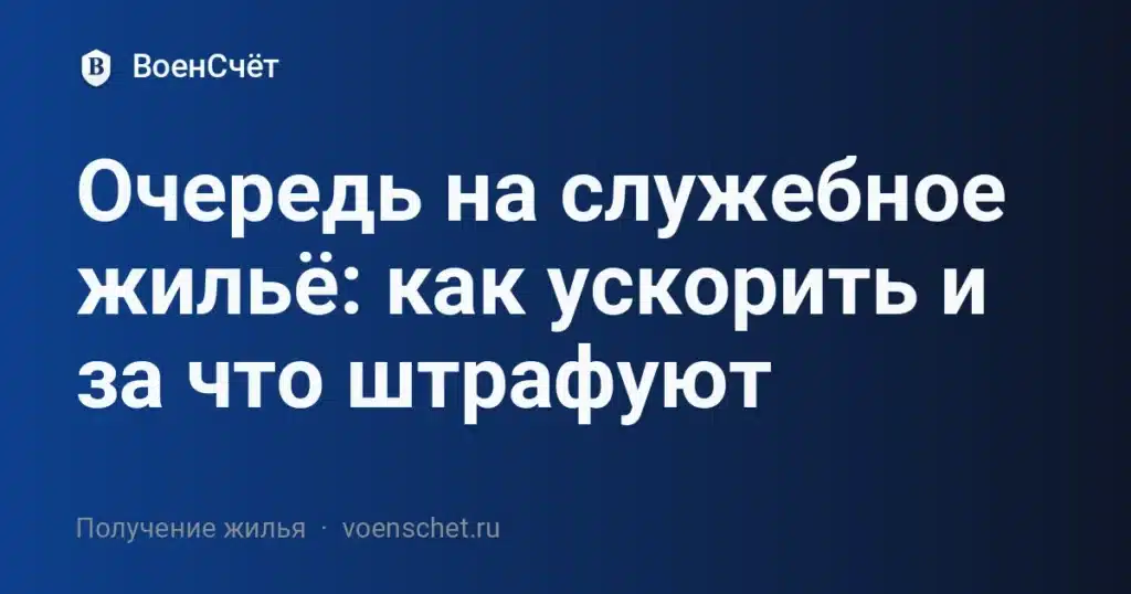 Очередь на служебное жильё — базовый механизм обеспечения военнослужащих жильём по месту службы. Ниже показано, как ускорить очередь на служебное жильё, кто может получить вне очереди и за что предусмотрены штрафы.