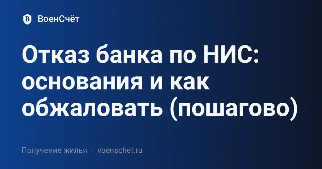 Отказ банка по НИС — частая ситуация, с которой сталкиваются участники военной ипотеки. В этой инструкции разбираем основания отказа банка по НИС, какие документы проверяют и как обжаловать решение: от ручного пересмотра до жалобы в Банк России.