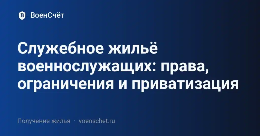 Служебное жильё военнослужащих — это специализированные квартиры/дома, предоставляемые на период прохождения службы и нуждаемости семьи. Режим такого жилья иной, чем у «обычных» квартир: оно выдаётся по договору найма специализированного жилого помещения и связано с фактом службы; приватизация в общем порядке не допускается. Базовые правила закреплены в Жилищном кодексе РФ и Законе № 76-ФЗ «О статусе военнослужащих». КонсультантПлюс