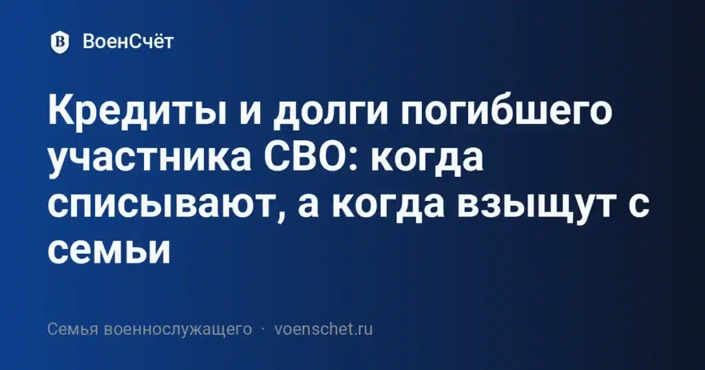 Долги погибшего участника СВО — кредиты, ипотека, налоги и коммунальные платежи — не исчезают сами по себе. Часть из них государство и банки действительно спишут, но какие-то обязанности могут перейти к семье. В этом разборе по шагам посмотрим, что будет с кредитами, ипотекой и другими долгами, а также как защитить жильё и социальные выплаты вдовы и родителей.