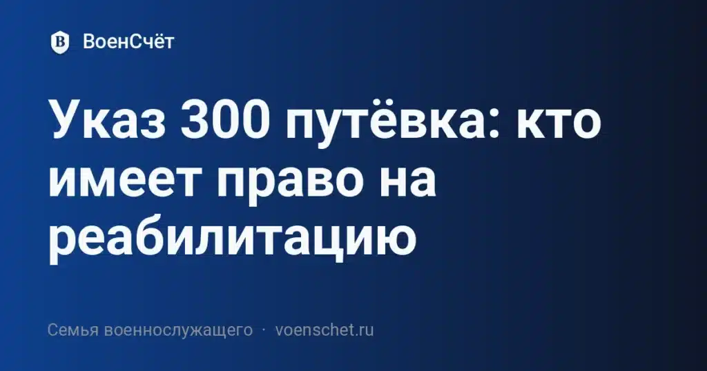 08 мая 2025 года Президент подписал Указ № 300 «О дополнительных социальных гарантиях членам семей военнослужащих…». Документ «Указ 300» даёт право на путёвку указ в ведомственный санаторий. Близким раненых бойцов право один раз бесплатно сопровождать их на санаторно-курортную реабилитацию и получить оплату проезда. Разберёмся, кому положена путёвка и как её оформить.