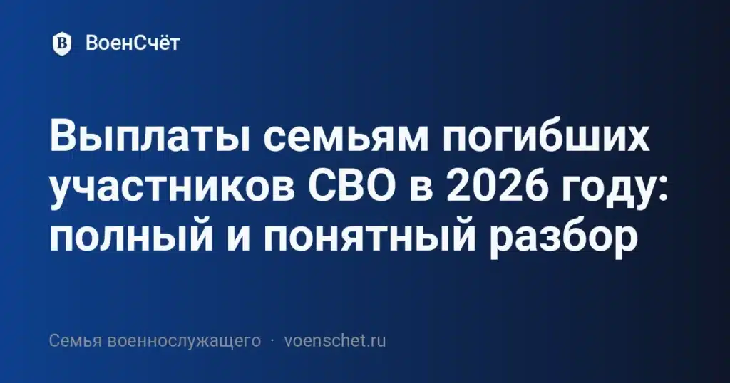 ВоенСчёт собрал в одном месте выплаты семьям погибших участников СВО 2026: какие именно деньги положены (федеральные и страховые), кто имеет право, как делят между родственниками, куда подавать и какие сроки. Мы даём суммы, ссылки на нормы и короткие чек-листы, чтобы оформить всё без лишних кругов.