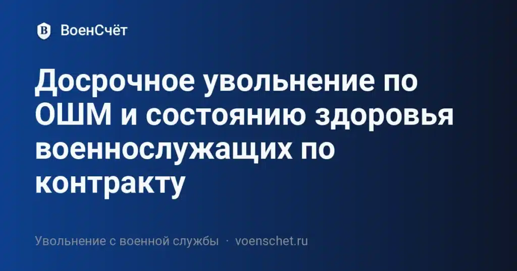 Военнослужащие по контракту могут быть уволены досрочно по уважительным причинам. Чаще всего это связано с сокращением штатов (ОШМ) или состоянием здоровья. В этой статье разберём, как происходит увольнение по каждому из оснований, какие документы нужны, какие выплаты положены и что важно знать, чтобы не потерять свои права.