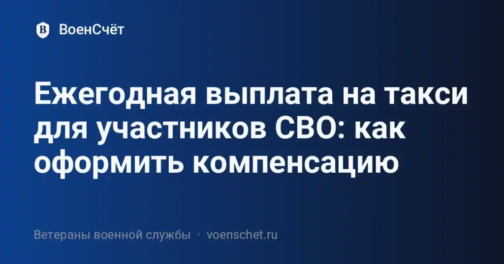 Выплата на такси СВО в ряде регионов оформляется как ежегодная компенсация расходов на социальное такси. В Московской области действует выплата 24 000 ₽ раз в год для участников СВО с установленными ограничениями по передвижению/ориентации (инвалидность по ранениям) и для семей с ребёнком-инвалидом; подать можно онлайн (через «Добродел»/портал региона) или через МФЦ. Требуются регистрация в Подмосковье и гражданство РФ.