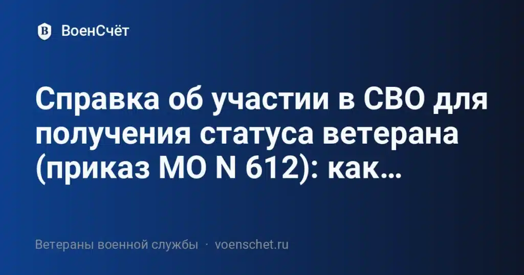 - Получить справку об участии в СВО по приказу МО № 612.