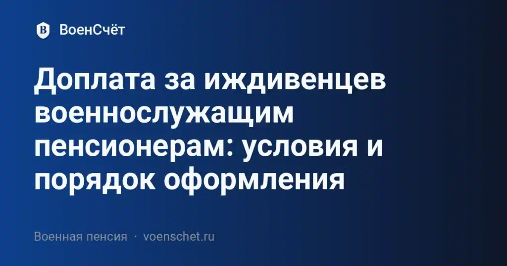 Доплата за иждивенцев военнослужащим пенсионерам — это официальная надбавка к военной пенсии, которую можно оформить при наличии на обеспечении нетрудоспособных членов семьи. В 2025 году она выплачивается через Социальный фонд РФ и положена при соблюдении установленных законом условий.