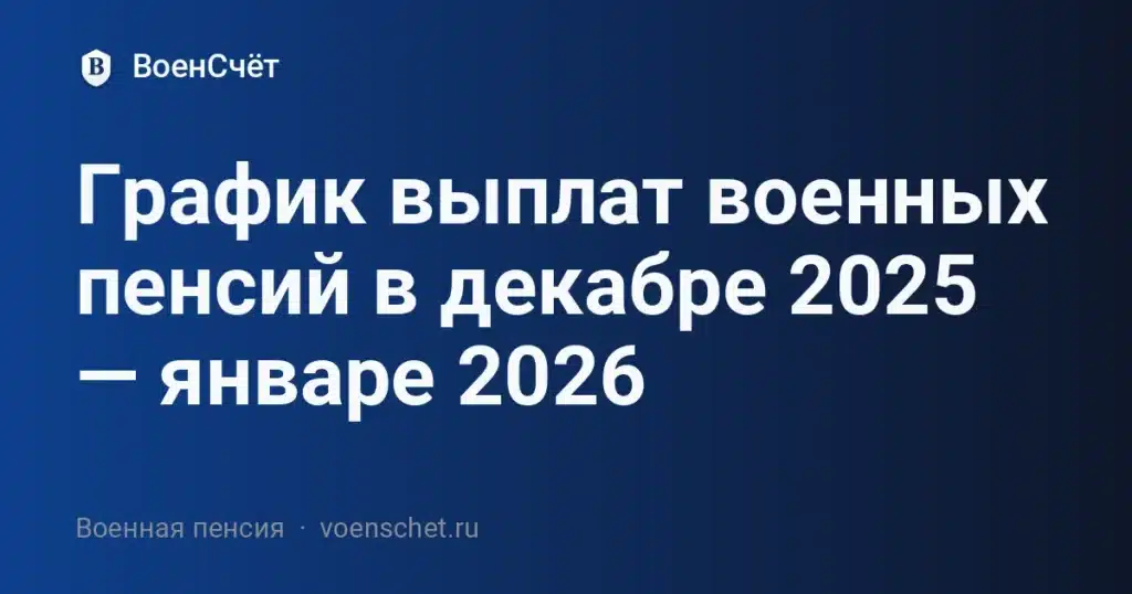 График выплат военных пенсий в декабре 2025 — январе 2026: в декабре пенсионеры силовых ведомств получают декабрьскую пенсию и досрочно январскую (через банки ориентировочно 22–29.12, через «Почту России» 25–30.12). В январе 2026 выплаты по обычному графику возобновляются после каникул, с первого рабочего дня. Ниже — точные ориентиры по банкам и доставке, ответы на вопросы о «двух пенсиях в декабре» и что делать, если ваша стандартная дата — после 11 января.
