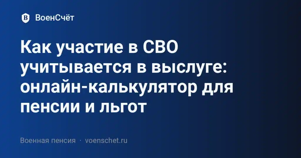 💡 В калькуляторе ВоенСчёта логика процентов строится именно на этом «каркасе»: мы считаем итоговую выслугу (с учётом СВО) и на её основе показываем ориентировочный процент пенсии, без учёта понижающего коэффициента, индексаций и региональных надбавок.