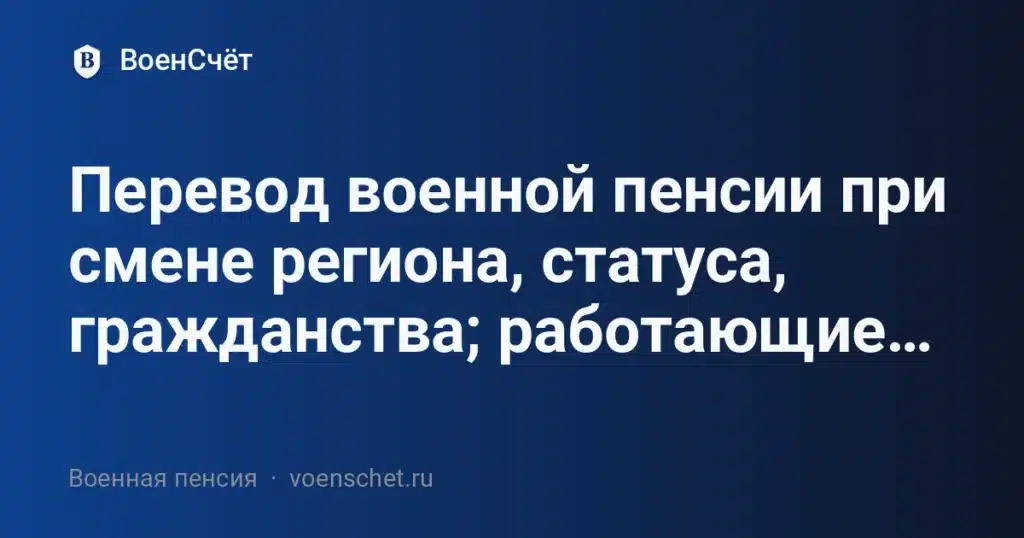 Перевод военной пенсии — это перенос доставки и расчётов при смене региона проживания, статуса или гражданства. Ниже разберём, как оформить перевод военной пенсии через СФР/ведомство, что меняется при переезде на Север и за рубеж, и что сохраняется для работающих пенсионеров-военных.