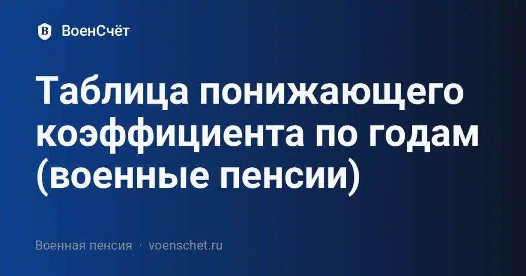 Понижающий коэффициент военной пенсии — это доля денежного довольствия, которая берётся в расчёт пенсии по Закону № 4468-1. Ниже — таблица понижающего коэффициента по годам с 2012 по 2026, точные даты изменений, формула и примеры расчёта.