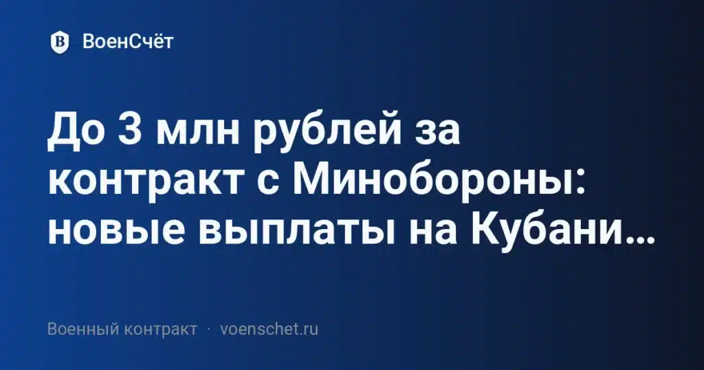 «Выплаты за контракт Кубани временно увеличены: край добавляет 2,1 млн ₽, а вместе с муниципальной и федеральной поддержкой сумма достигает 3 млн ₽. Поэтому тем, кто подпишет контракт с 25.08 по 30.09.2025, важно успеть оформить документы своевременно.»