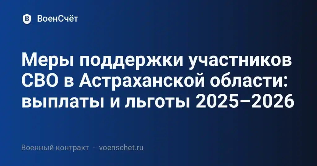 Поддержка СВО Астраханская область — это региональные и федеральные выплаты: 1,6 млн ₽ за контракт, 250–500 тыс. ₽ за ранение, 1 млн ₽ семье погибшего. Ниже — условия и оформление на 2025–2026.