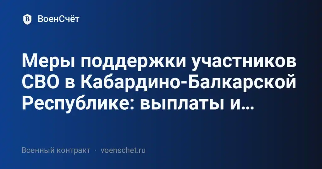 Льготы СВО Кабардино-Балкария в 2025–2026 годах — это региональные выплаты при контракте, ежемесячные и разовые пособия, налоговые льготы, меры для семей и реабилитация. В статье — суммы, условия и порядок оформления с актуальными ссылками на документы.