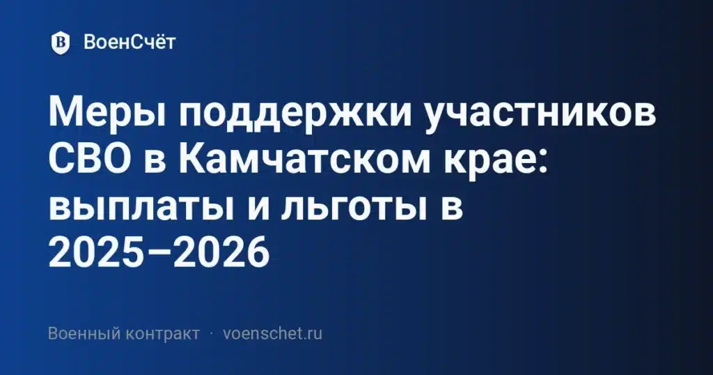 В этом материале собраны льготы СВО Камчатский край на 2025–2026 годы: региональные и федеральные выплаты за контракт, налоговые послабления, компенсации ЖКУ, бесплатные земельные участки для семей, а также порядок оформления. Ниже — суммы, условия, документы и пошаговая инструкция, как получить льготы СВО в Камчатском крае.