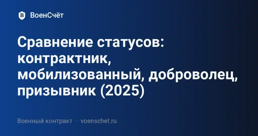В этой статье разберёмся, чем отличаются контрактник мобилизованный доброволец призывник: какие права и обязанности, чем различаются выплаты и надбавки, каковы сроки службы и возможности расторгнуть контракт. Короткие таблицы и примеры помогут быстро понять, что выбрать и чего ожидать.