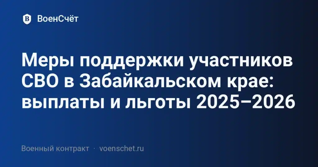 Забайкалье меры СВО — региональный пакет 2025 года. Во-первых, действует единовременная выплата 2 000 000 ₽ при контракте от 1 года. Во-вторых, доступны краевые сервисы для семьи: соцподдержка, реабилитация, трудоустройство через Фонд «Защитники Отечества» и соцзащиту. Кроме того, часть выплат оформляется без заявления по реестрам военкомата. В итоге в гайде «Забайкалье меры СВО» объясняем, кому положено, куда обращаться и какие документы готовить.