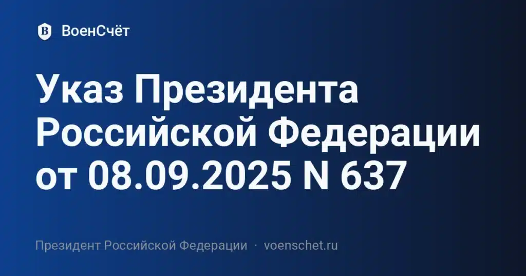 Официальная публикация: Указ Президента Российской Федерации № 637 от 08.09.2025.