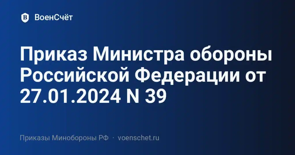 Официальная публикация: приказ Министра обороны Российской Федерации № 39 от 27.01.2024.