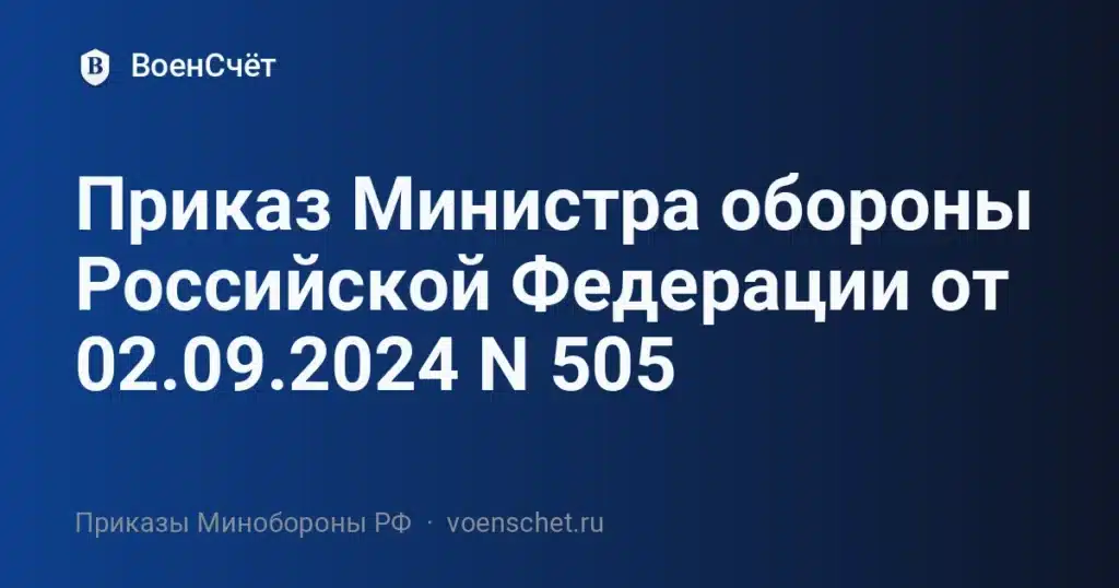 Официальная публикация: приказ Министра обороны Российской Федерации № 505 от 02.09.2024.