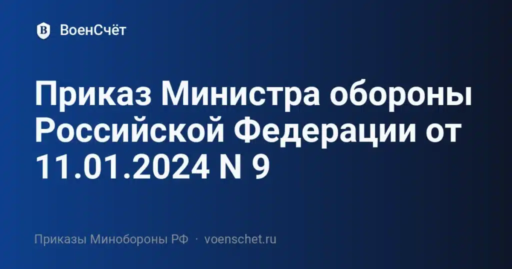 Официальная публикация: приказ Министра обороны Российской Федерации № 9 от 11.01.2024.