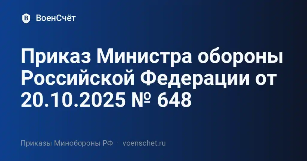 Официальная публикация: Приказ Министра обороны Российской Федерации № 648 от 20.10.2025.
