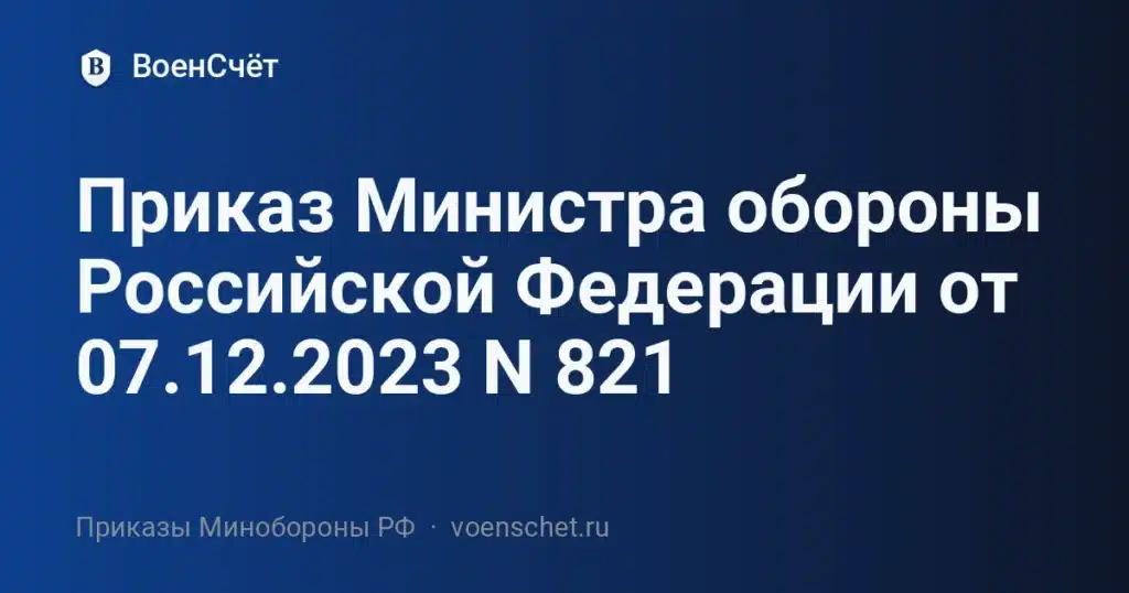 Официальная публикация: Приказ Министра обороны Российской Федерации № 821 от 07.12.2023.