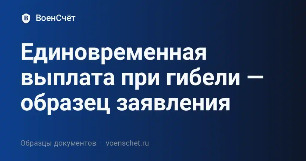 Единовременная выплата при гибели назначается членам семьи или правопреемникам военнослужащего. Чтобы получить деньги без задержек, важно подать корректно оформленное заявление с полным комплектом документов. На этой странице вы скачаете готовый образец DOCX и получите пошаговую инструкцию: кому адресовать, какие доказательства приложить, как распределить доли между получателями и на какие реквизиты просить перечисление. Грамотно составленное заявление снижает риск возврата по формальным основаниям и ускоряет перечисление средств.