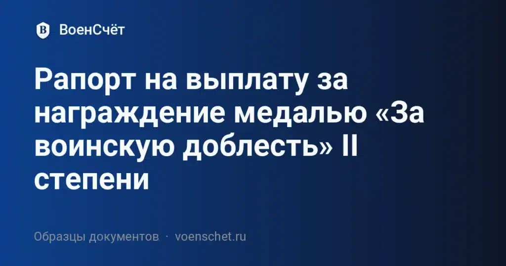 Образец рапорта на выплату за медаль «За воинскую доблесть» II степени