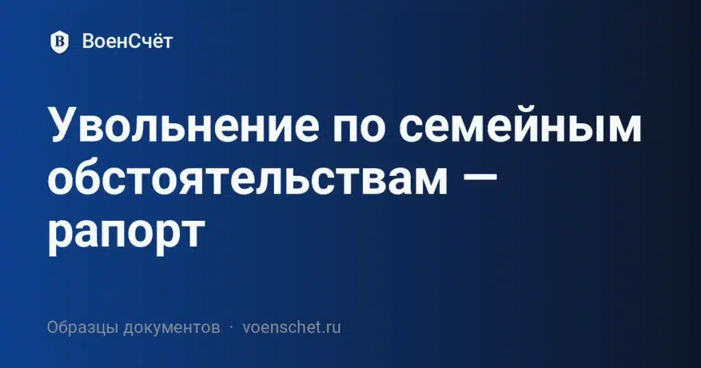 Увольнение по семейным обстоятельствам применяется, когда семейная ситуация делает продолжение службы объективно затруднительным: требуется уход за тяжело больным родственником, родился ребёнок и нужен постоянный уход, оформлена опека/усыновление, отсутствует место в ДОУ, супруг(а) переводится в другой регион и семья переезжает, либо возникли иные подтверждённые обстоятельства. В таких случаях решение запускается через правильно оформленный рапорт. Грамотно подготовленное «шапка — причины — просьбы — приложения» ускоряет подготовку приказов, исключение из списков личного состава, предоставление отпуска перед увольнением или выплату компенсации за неиспользованные дни, а также финальный расчёт.